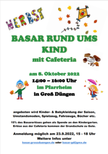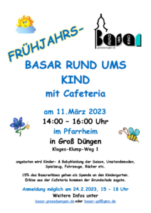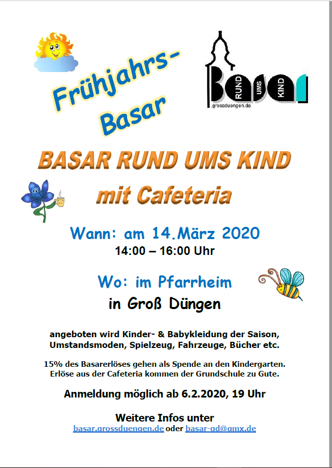 Viele fleißige Helfer bemühen sich seit Jahren einen Basar für Kinderkleidung auf die Beine zu stellen. Unsere aktuelle Statistik reicht bis in das Jahr 2008 zurück. Aber auch schon weit vorher wurde der Basar erstmals im neuen Kindergarten Groß Düngen durchgeführt – noch manuell und ohne Computer.